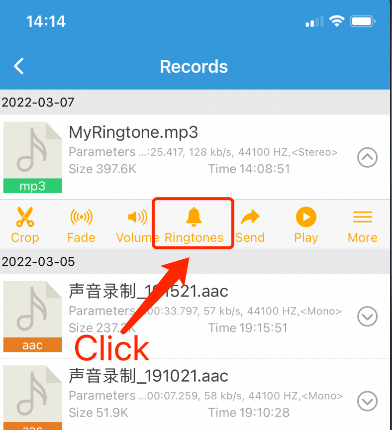 In 「Account Center」- 「Records」,Find the record for which you want to set the ringtone,click the “Ringtones” button below the record, like the picture below![]()