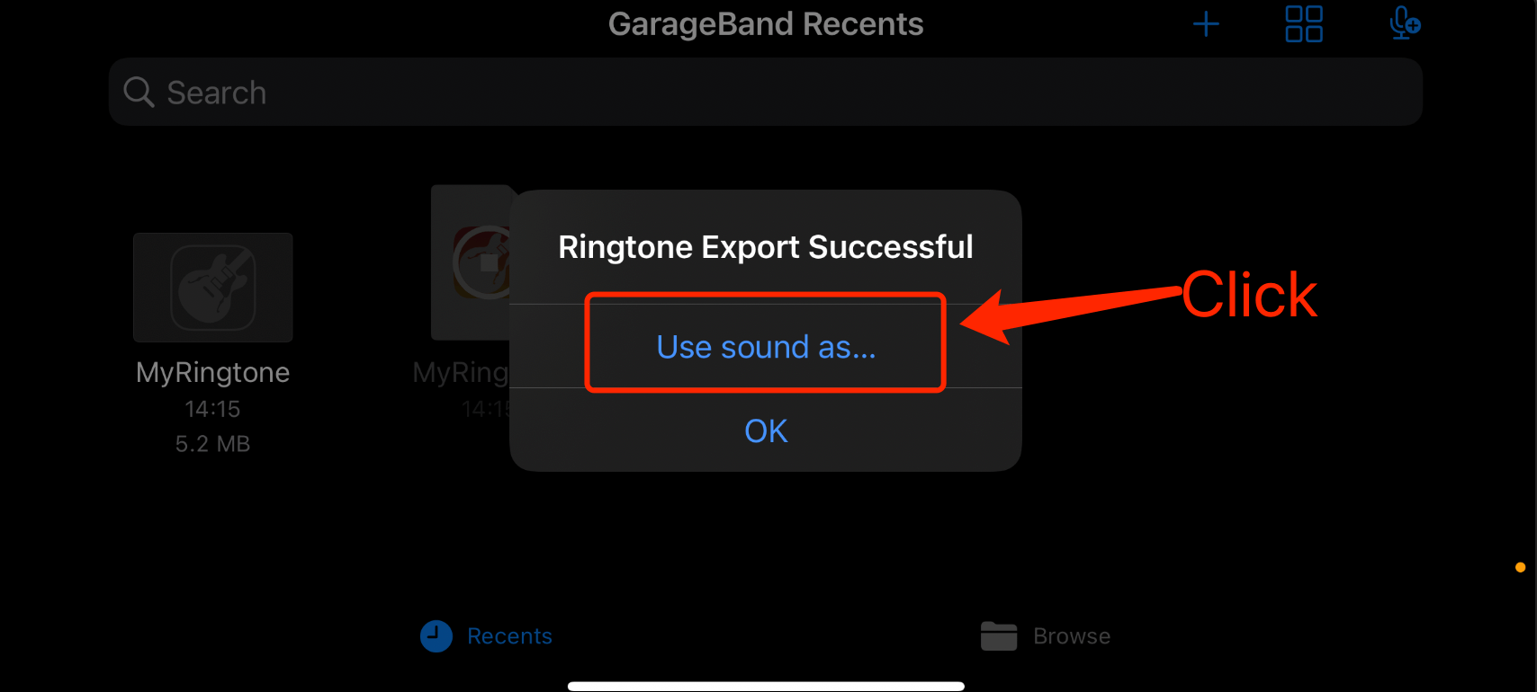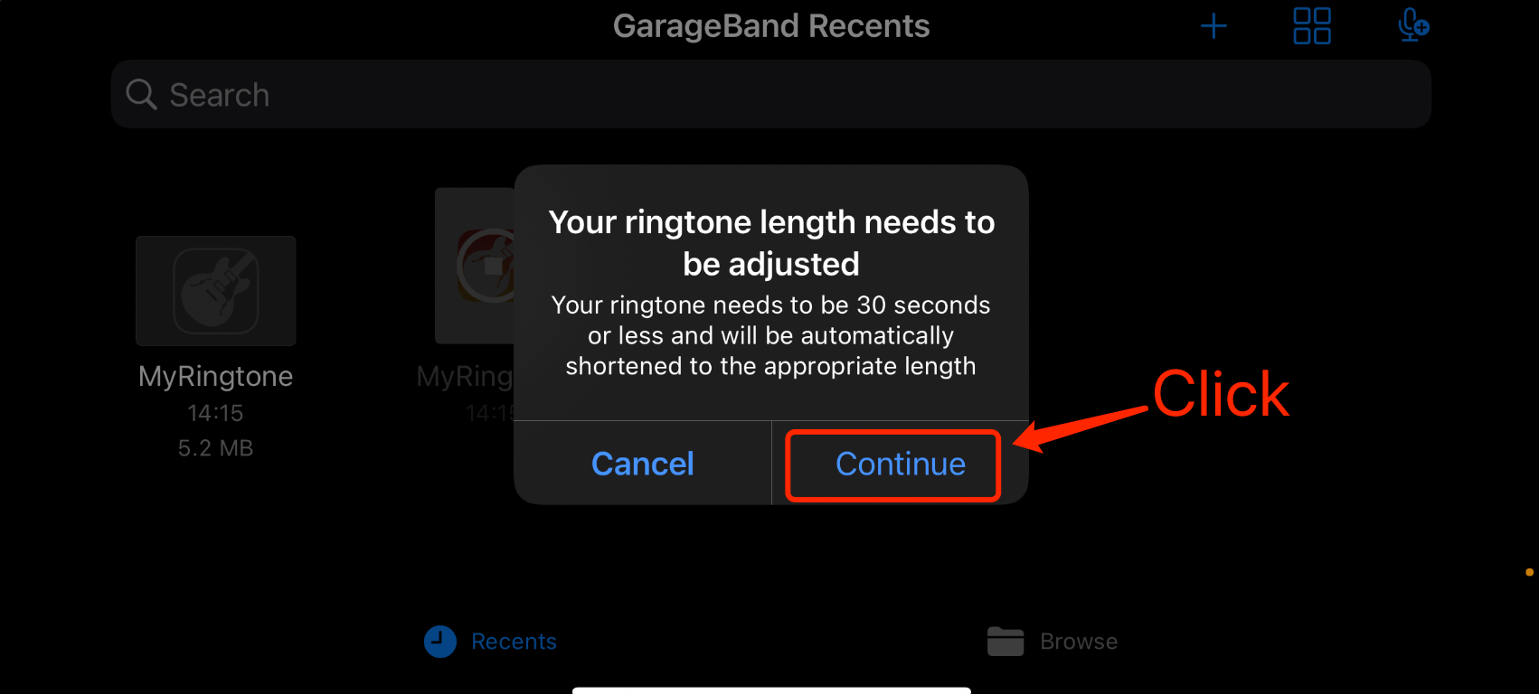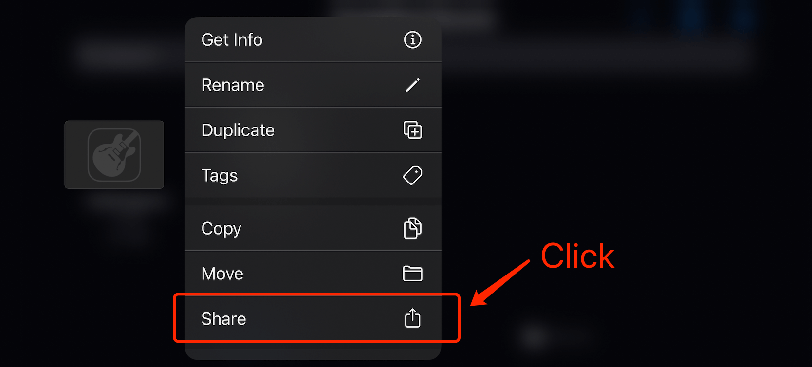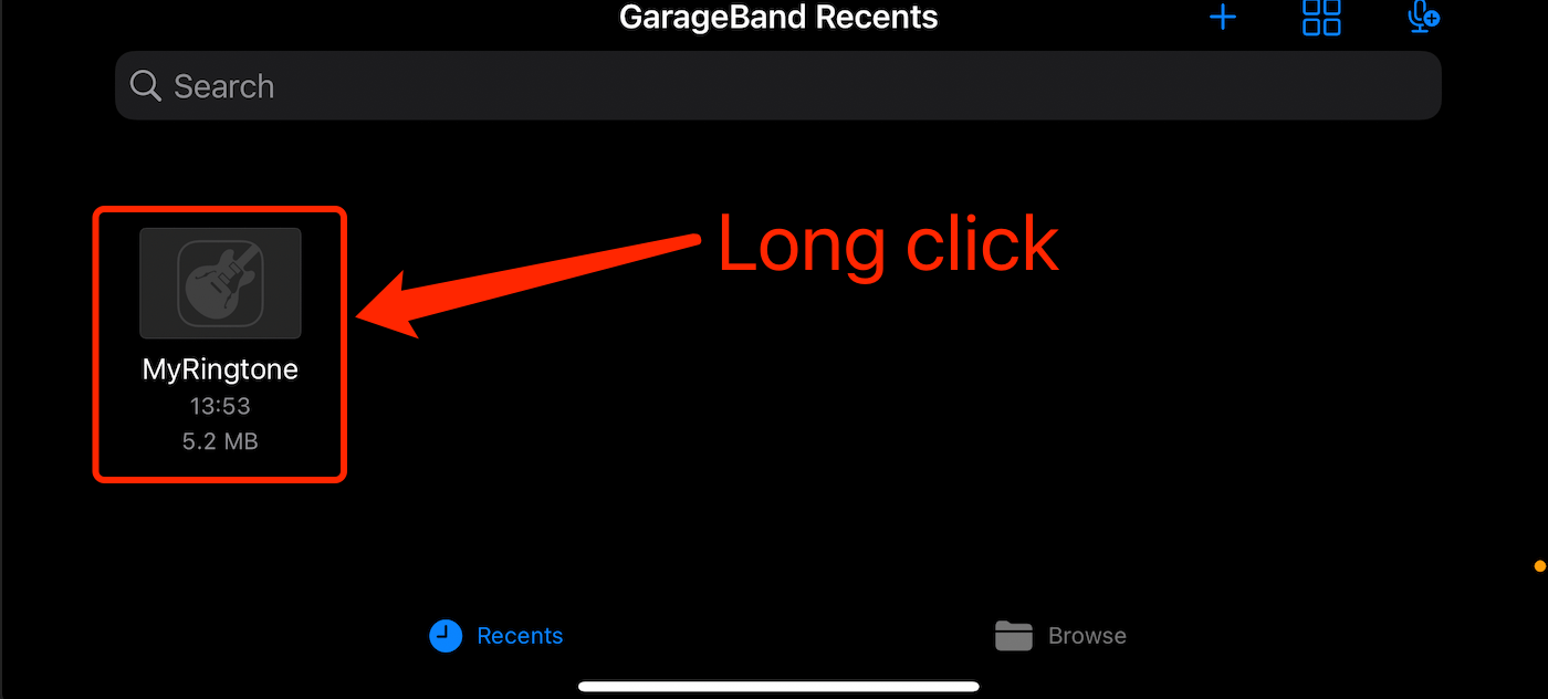 - Find and long press the ringtone in “GarageBand”, like the picture below