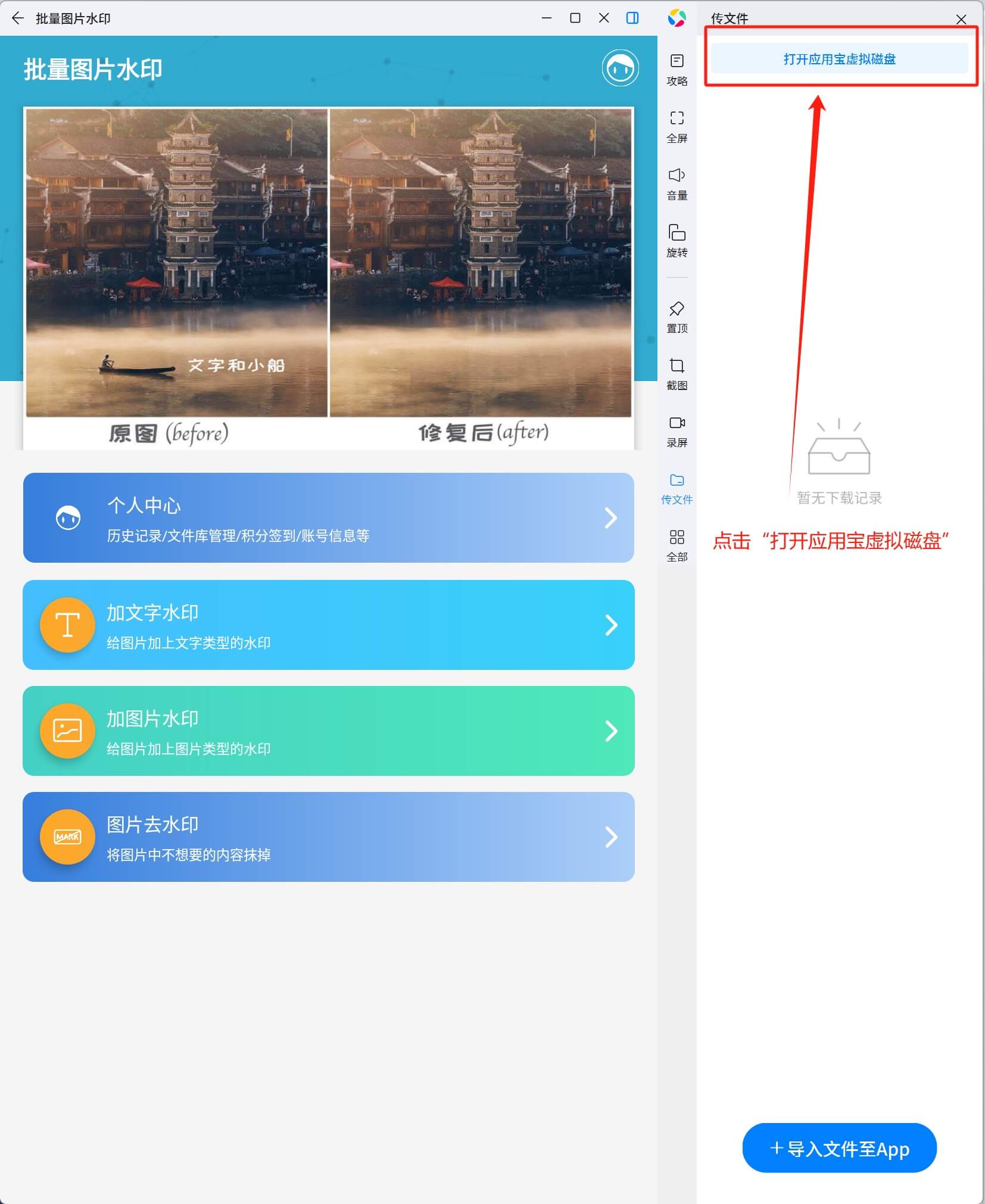 Hi ~~,我的大英雄,让我来教你如何在应用宝安卓模拟器中导入文件到批量图片水印吧 ^_^