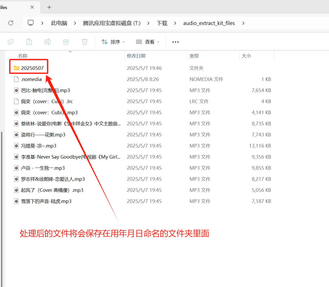 6. 在你处理完文件之后,处理后的文件将会保存在用年月日命名的文件夹里面,你可以在这个文件夹里面找到你处理后的文件,如下图所示