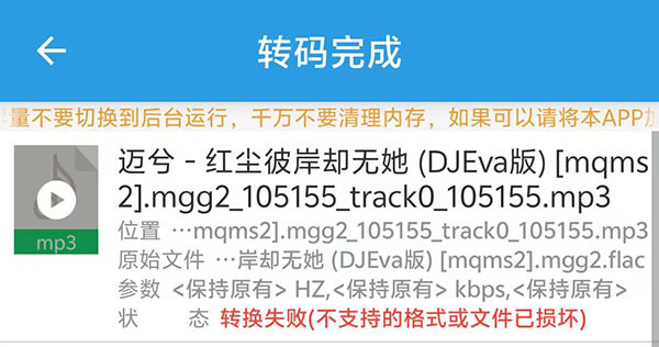 您提供的音频文件格式已经损坏,导致我们的APP无法识别,因此无法进行处理。